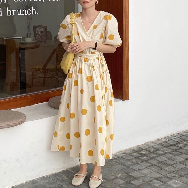 サマースタンダードスリーブプリントレースウェストドレス レディース レトロ 夏物 フラワーデザイン ICC_レディース2492605