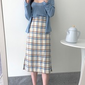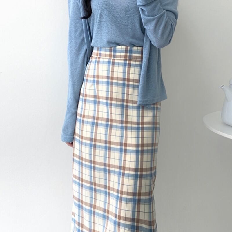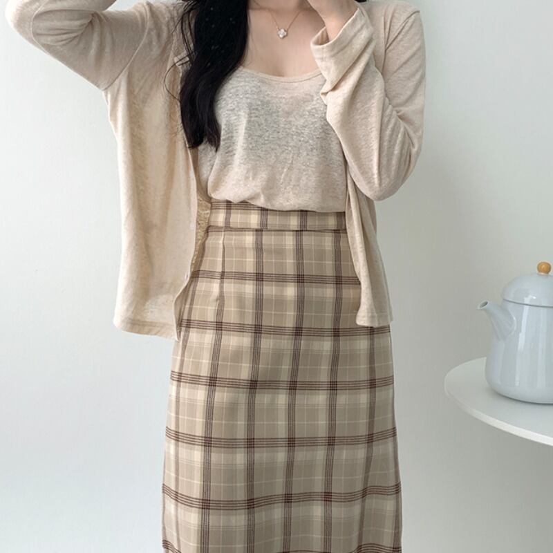 スプリングサマースタンダード格子柄ハイウェストウェストスカート Aライン レトロ 春物 夏物 ICC_レディース3219984