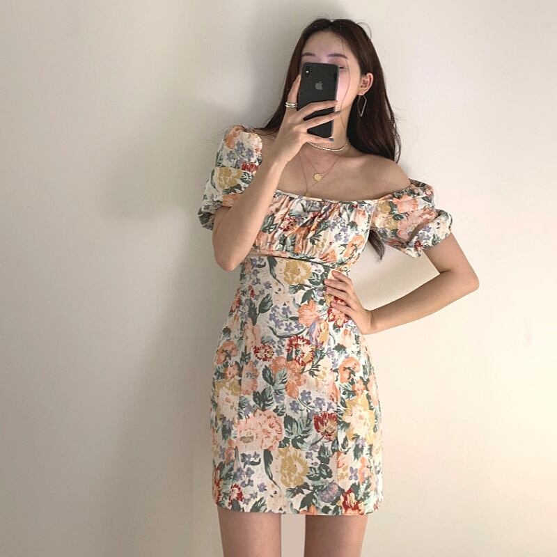 サマースタイルフローラルカラーウェストドレス 夏物 花柄 スクウェア ICC_レディース1009482