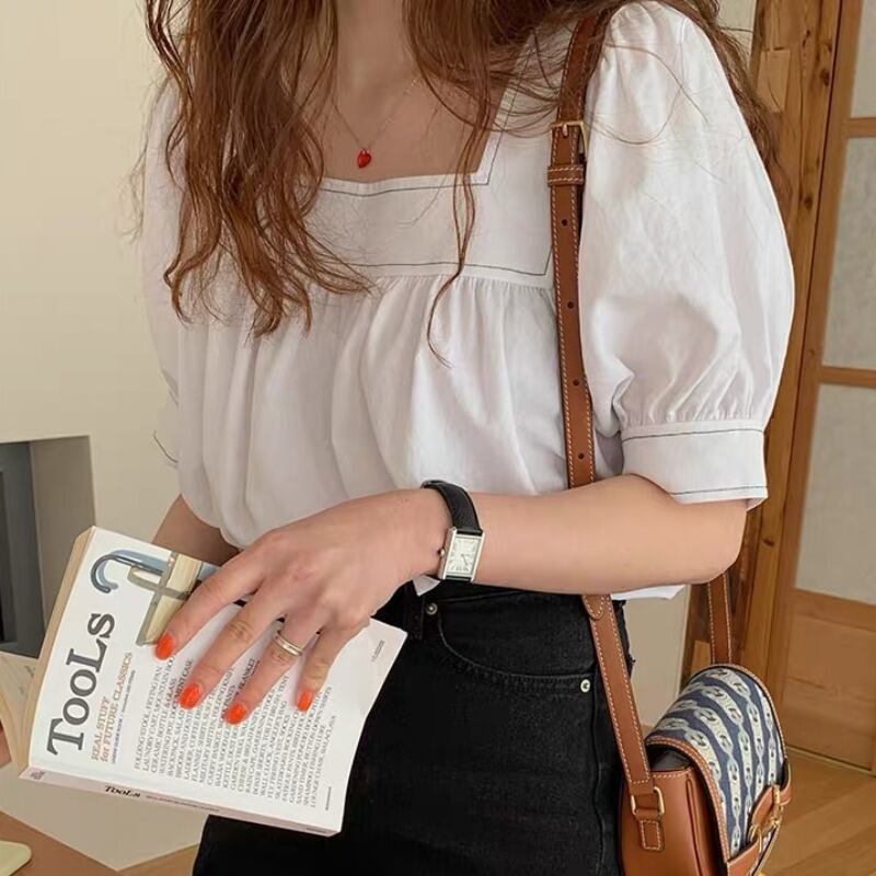 サマーシャツ スタンダードルーズショートスリーブカラー ランタンスリーブ レトロ 夏物 スクウェア ICC_レディース8869915