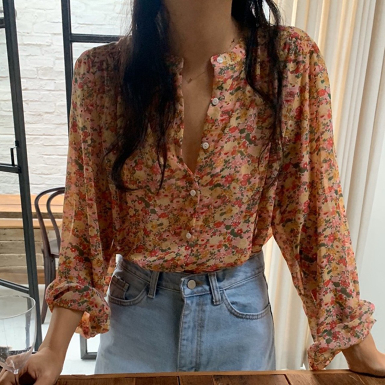 スプリングサマーFlowerデザイン スタンダードシャツ レトロ 春物 夏物 フラワーデザイン ICC_レディース0250101