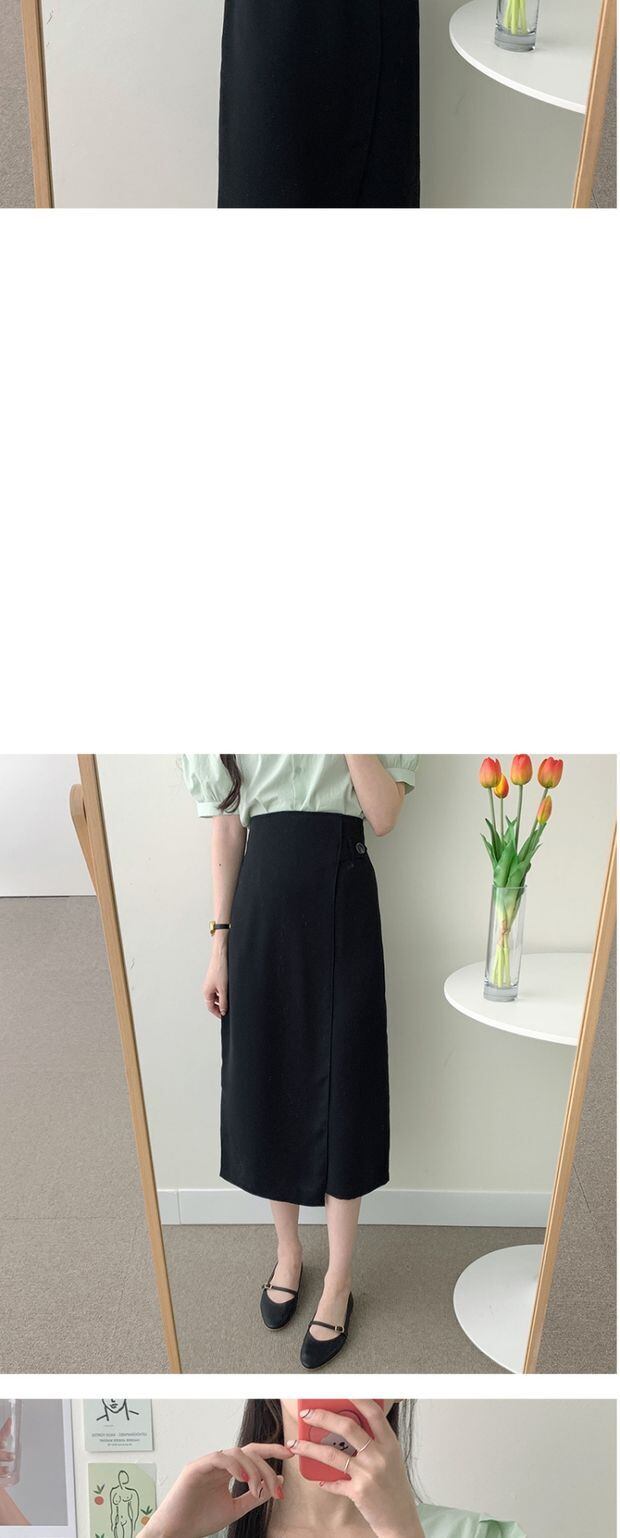 スタンダードスタイルソリッド カラースカート スリム レトロ ソリッドカラー 左左右右4015965