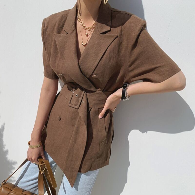 スプリングサマーロングダブルブレストレッドジャケット コットン 春物 夏物 ICC_レディース1528977