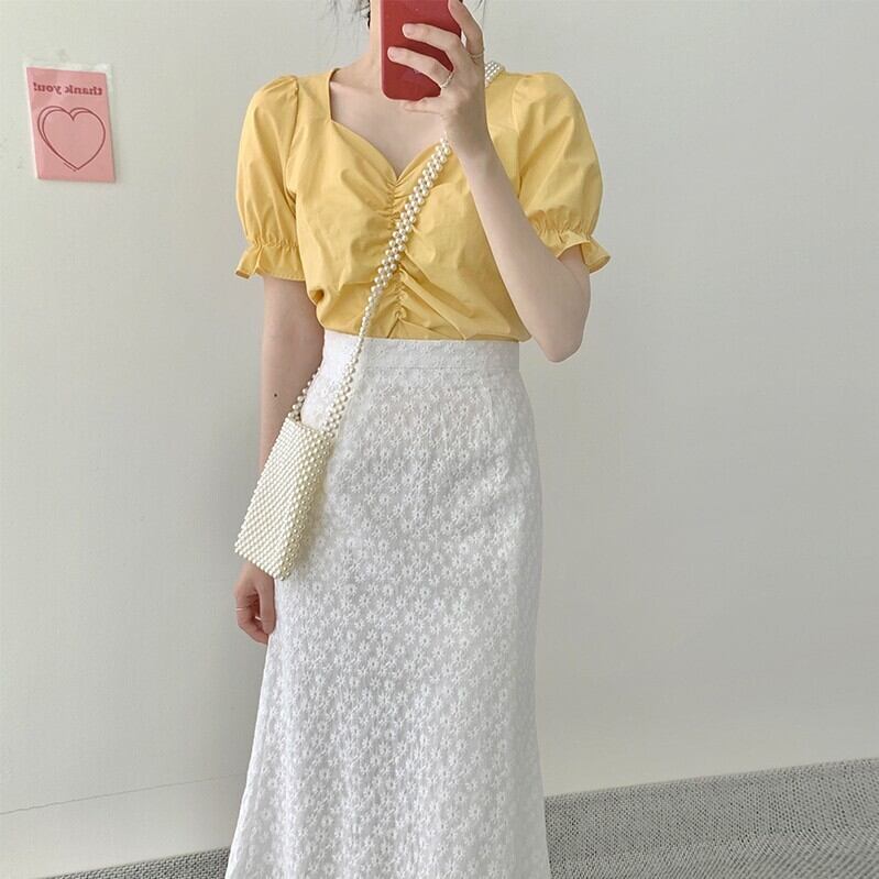 色:ホワイトトップ,黄色のシャツ,白いスカート