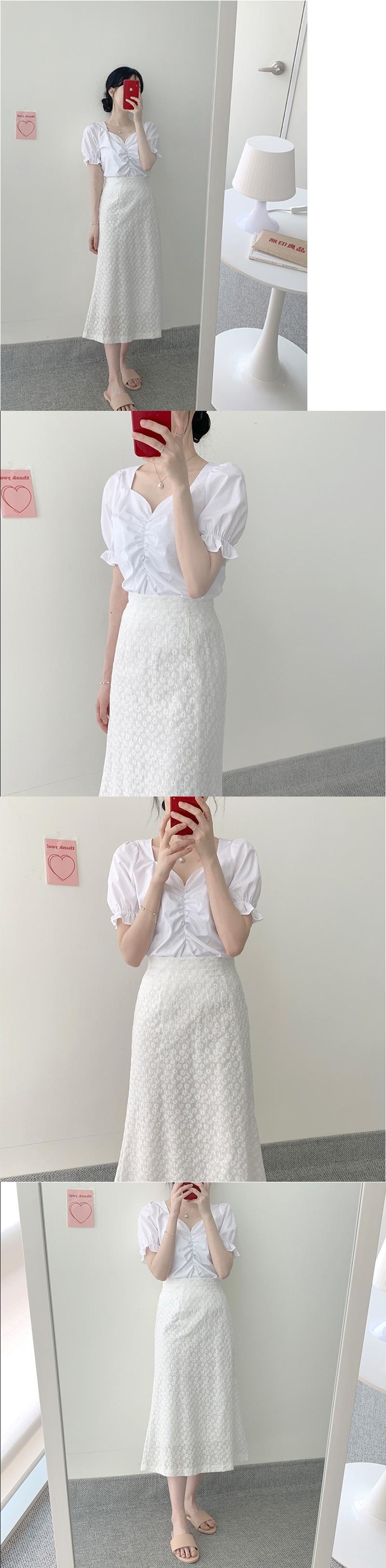 スタンダードVネック半袖スリーブシャツ ブラウス ウェストレース刺繍スカート ショート レトロ ハーフスリーブ 左左右右4164113
