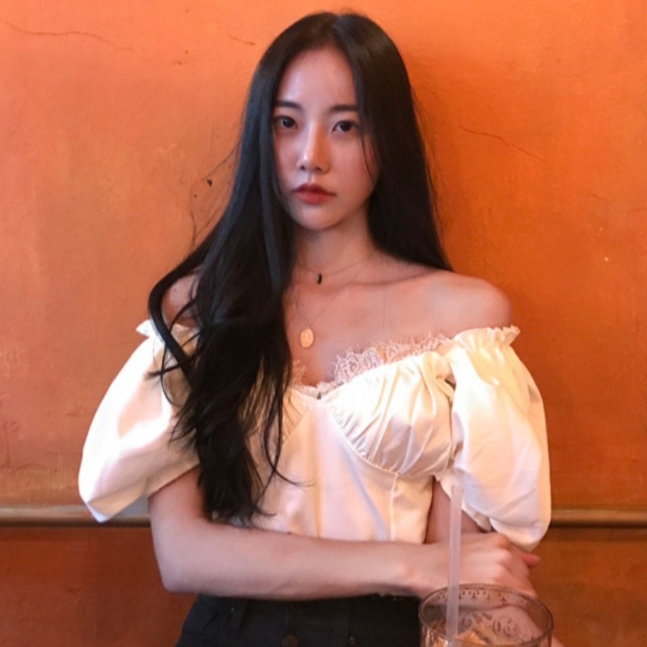 サマーレースVネックスリーブショートスリムジッパーシャツ トップス 夏物 ICC_レディース6102048