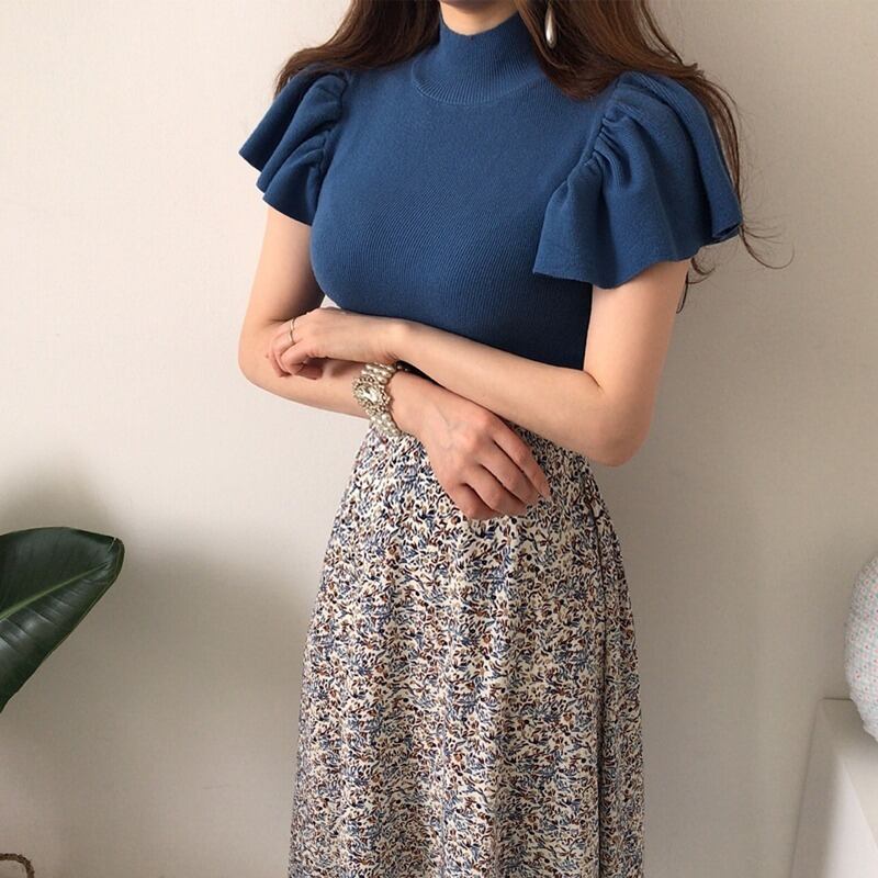 カラースリムセーター Tシャツ ハイウェストウェストフローラルスカート 花柄 ICC_レディース4252569