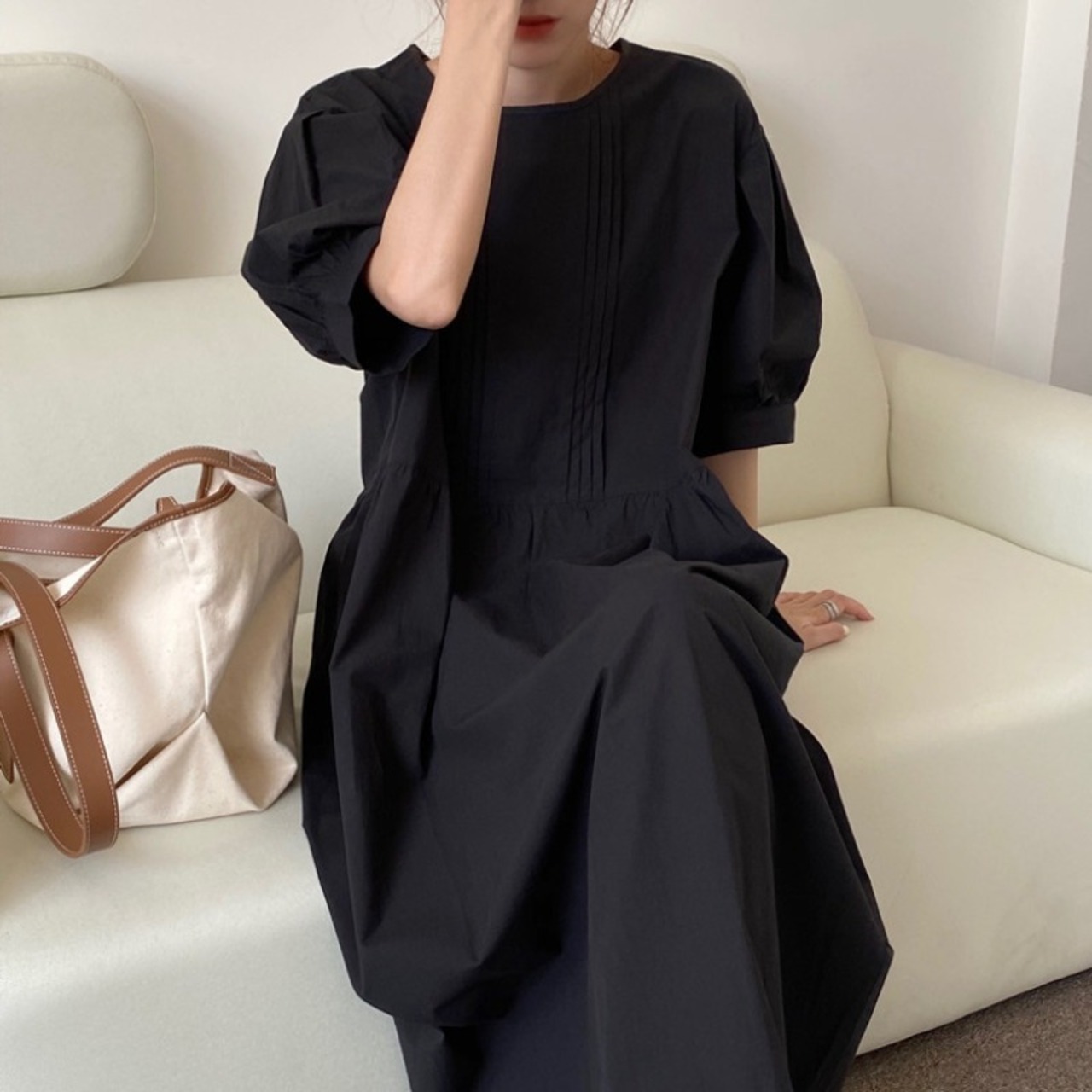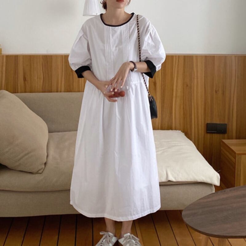 サマーカラーロングスカート ルーズホワイトドレス 夏物 ステッチ ICC_レディース8123398