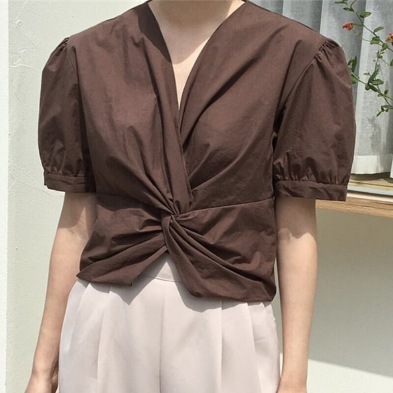 シャツ Vネック薄手クロスショートトップス ICC_レディース3688944