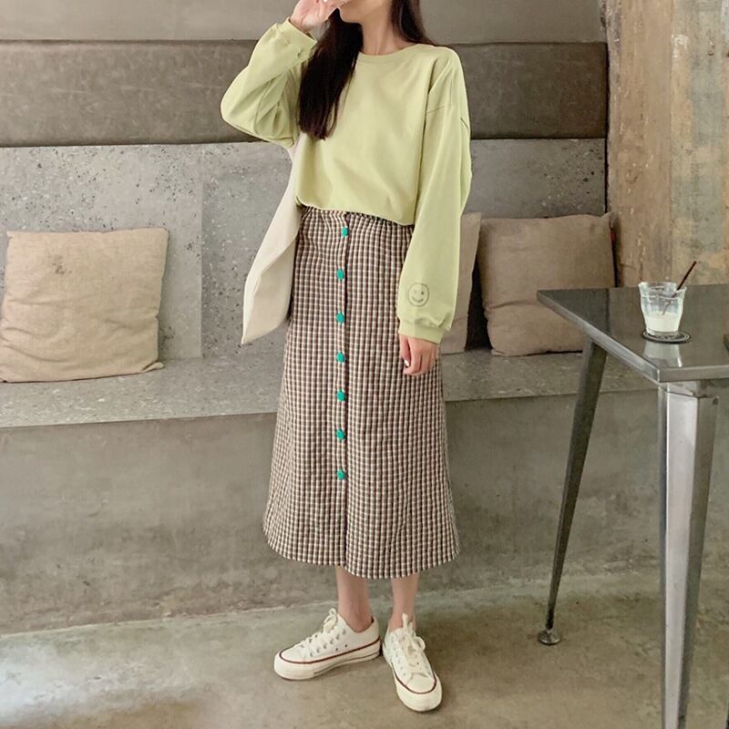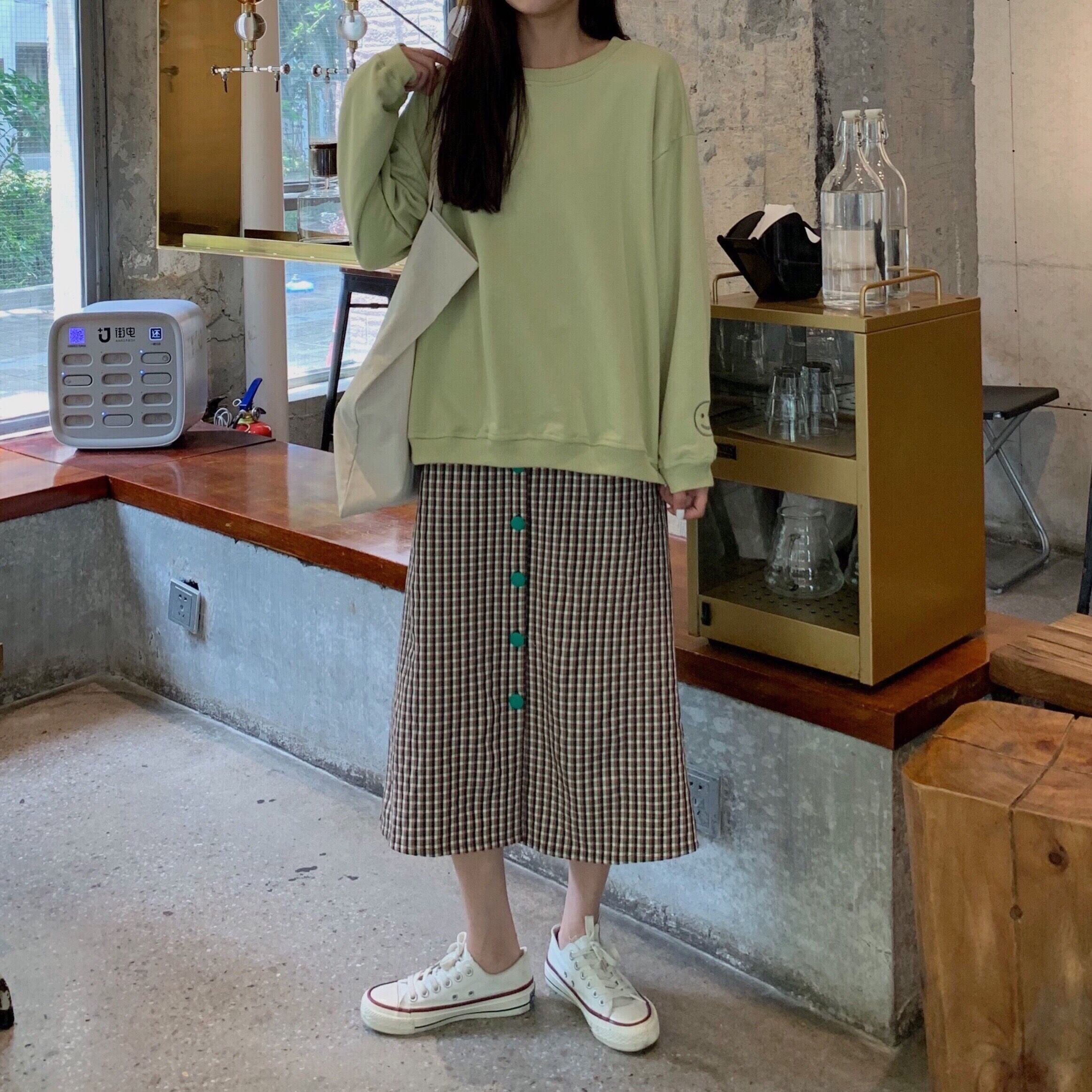 オータムウィンター格子柄スカート セーター 秋物 冬物 左左右右5660732