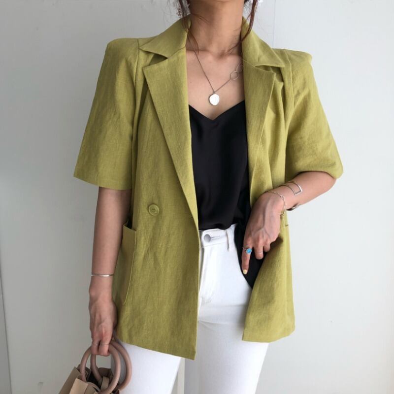 サマーバックルルーズソリッド カラーポケットカジュアル薄手ジャケット 夏物 ソリッドカラー ICC_レディース7402275