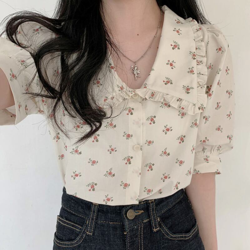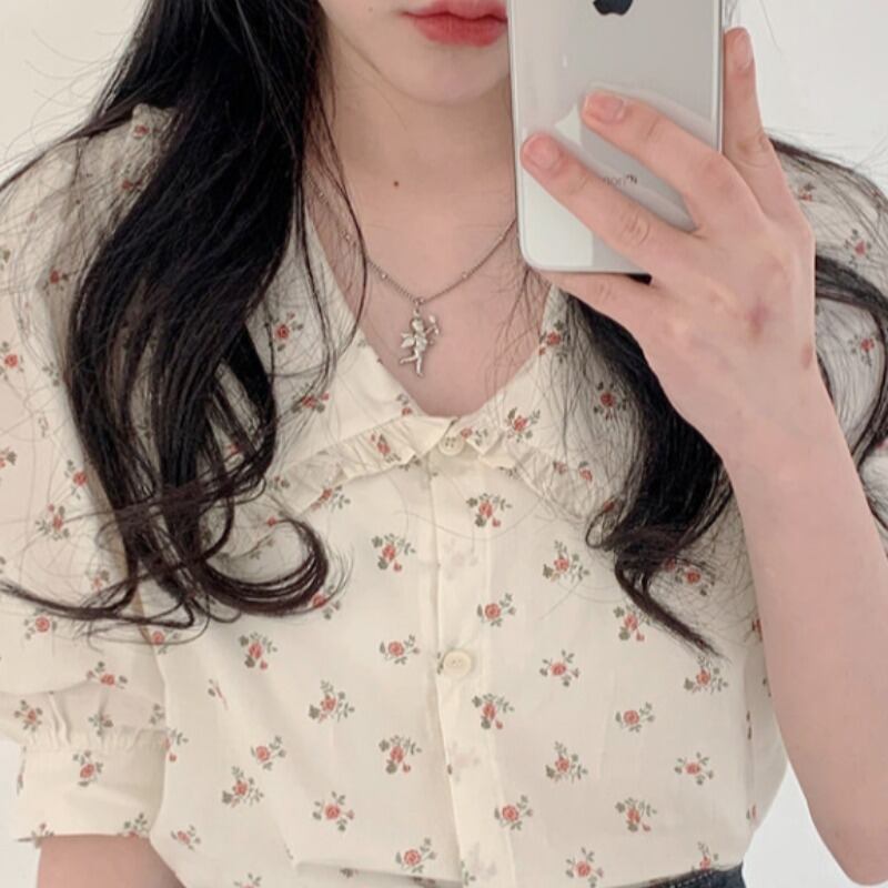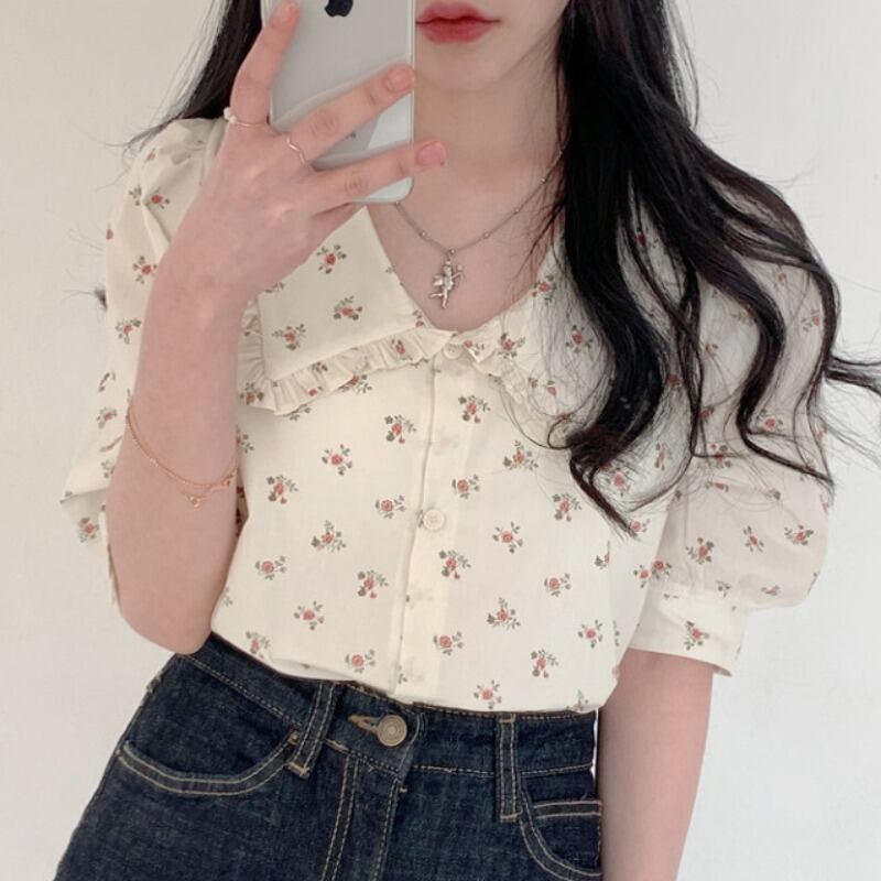 サマーフローラル薄手シャツ スリーブ半袖トップス ショート ハーフスリーブ 夏物 花柄 ICC_レディース4368340