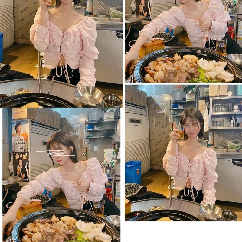 パウダーホワイトカラープリーツストラップ シャツ レディース スクウェア ICC_レディース6905195
