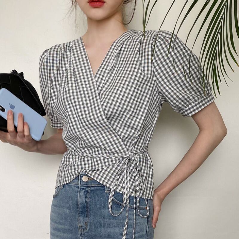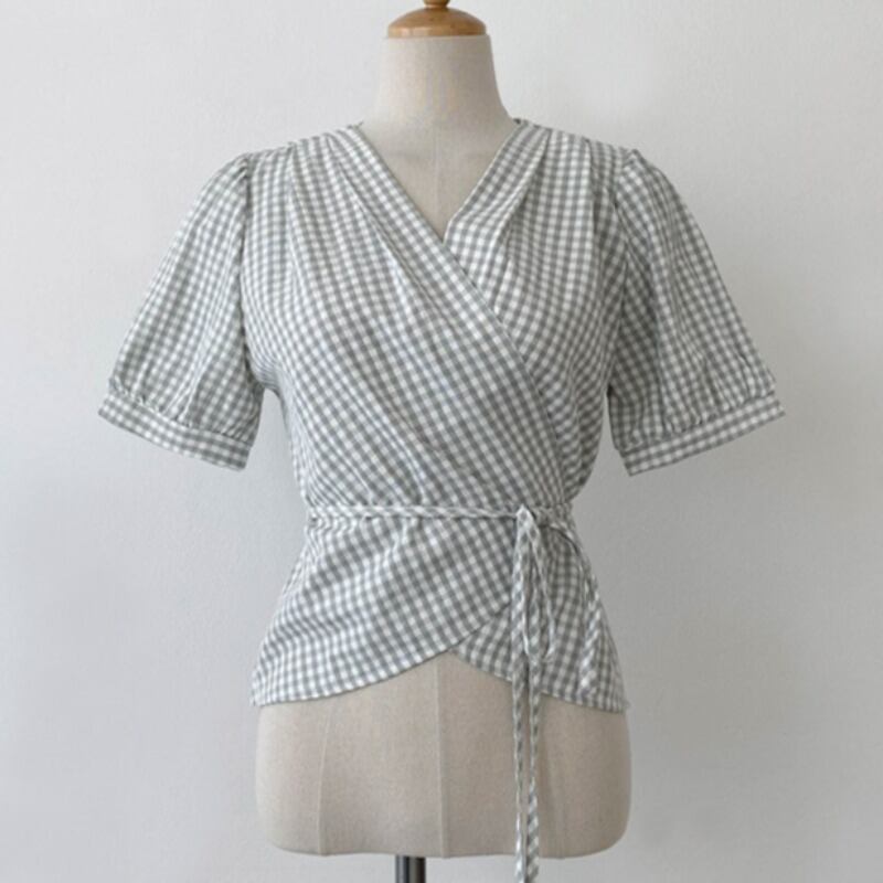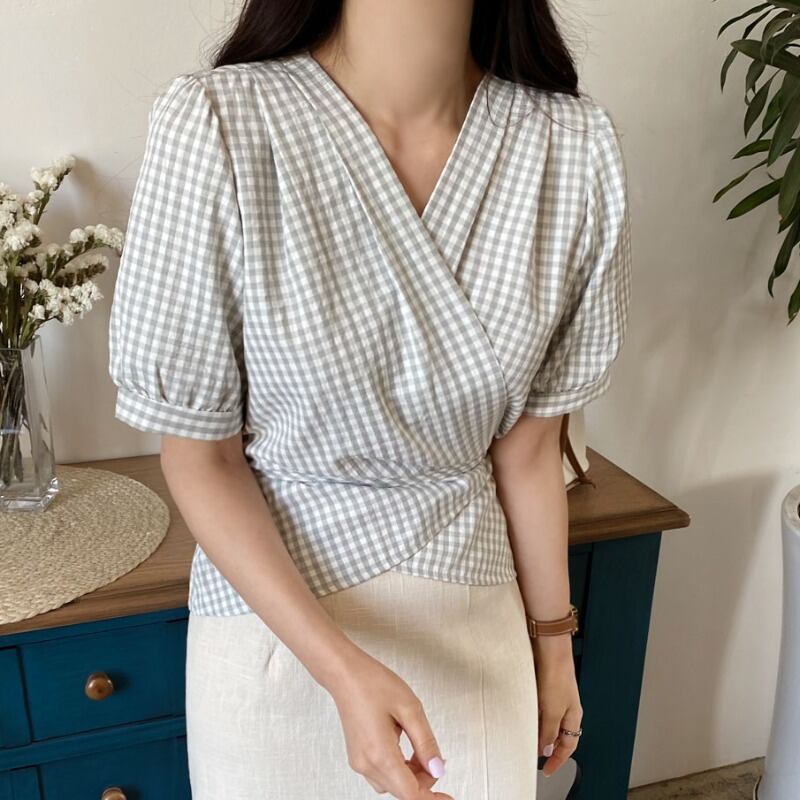 トップス サマーワンピースショート格子柄シャツ 夏物 ICC_レディース7779111