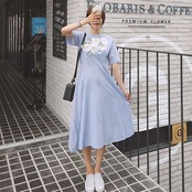 ストライプ薄手ロングサマー ハイウェスト レッド 刺繍 夏物 スカート フラワーデザイン ICC_レディース9588678