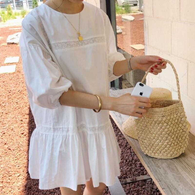 サマースリーブスカート ルーズ半袖薄手ドレス ショート ハーフスリーブ 大人ガーリー スウィート キュート カジュアル 夏物 ICC_レディース5758628