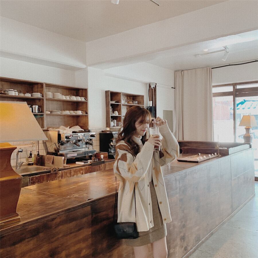 スタンダードオータムウィンタースタイルカーディガンジャケット 格子柄ルーズセーター レディース レトロ 秋物 冬物 左左右右7902815