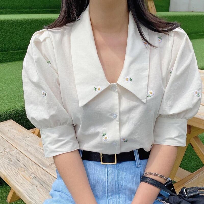 サマーカラー刺繍Flowerデザイン シャツ トップス 大人ガーリー スウィート キュート カジュアル 夏物 フラワーデザイン ICC_レディース1383426