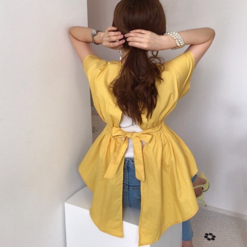 サマー薄手ラウンドネックバックウェストシャツ レディース リボン 夏物 Oネック ICC_レディース3050393