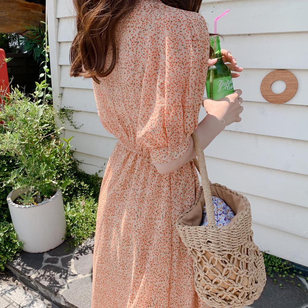 スタンダードスカート ロングウェストシフォンフローラルドレス サマー レトロ 夏物 花柄 フラワーデザイン 左左右右0804229