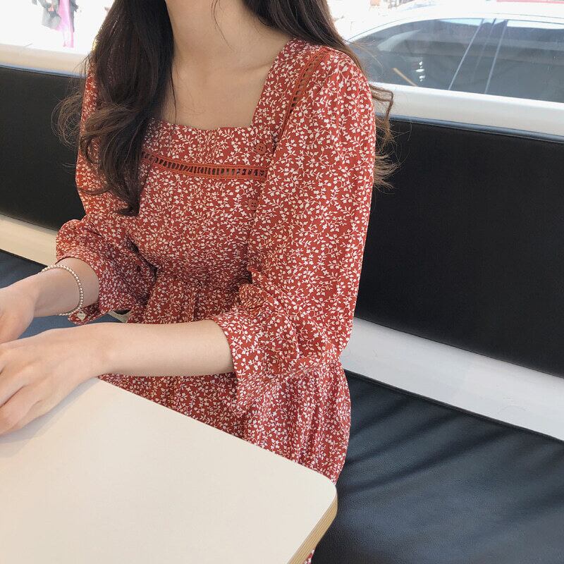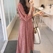スプリングサマースタンダードスカート ロングウェストシフォンフローラルドレス レディース レトロ 春物 夏物 花柄 フラワーデザイン 左左右右7142304
