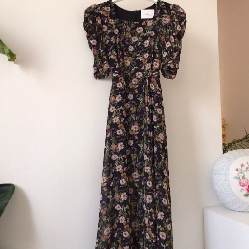 スカート サマースタンダードカラー半袖スリーブウェストシフォンフローラルドレス ショート レトロ ハーフスリーブ 夏物 花柄 フラワーデザイン スクウェア ICC_レディース3047249