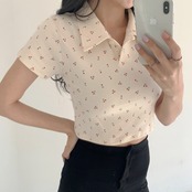 サマージャケット カラーシャツ ハイウェストウェストショート半袖スリーブTシャツ レディース ハーフスリーブ 夏物 ICC_レディース4630528
