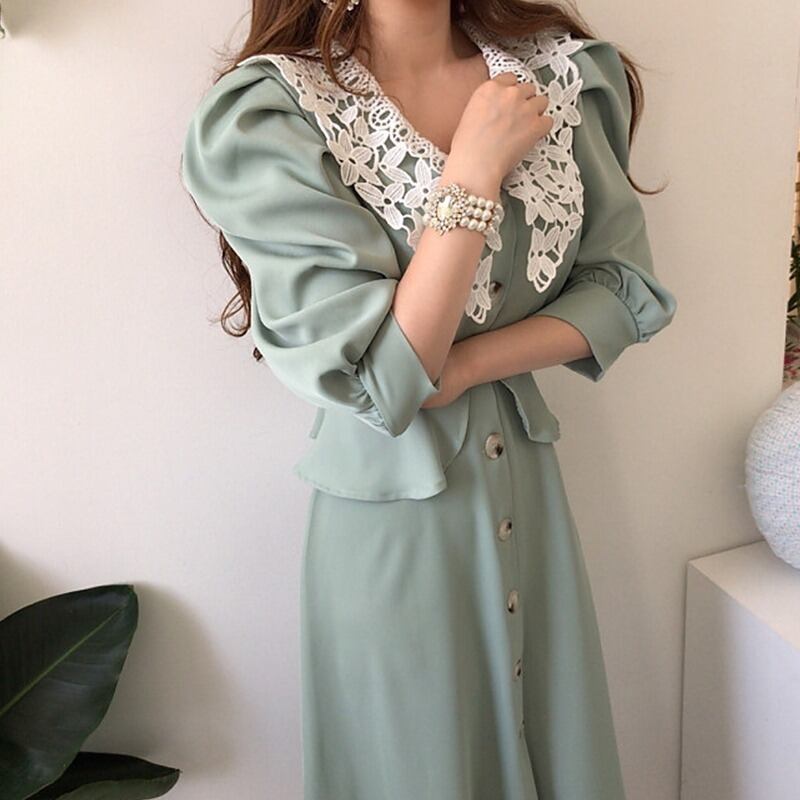 レースFlowerデザイン ウェストスリーブドレス フラワーデザイン ステッチ ICC_レディース6370798