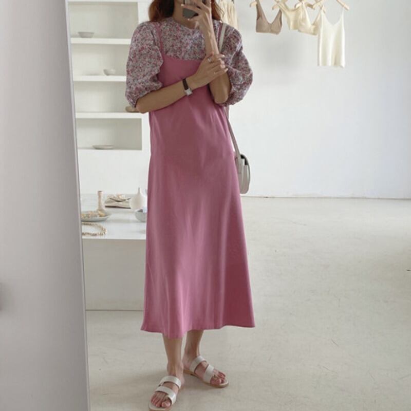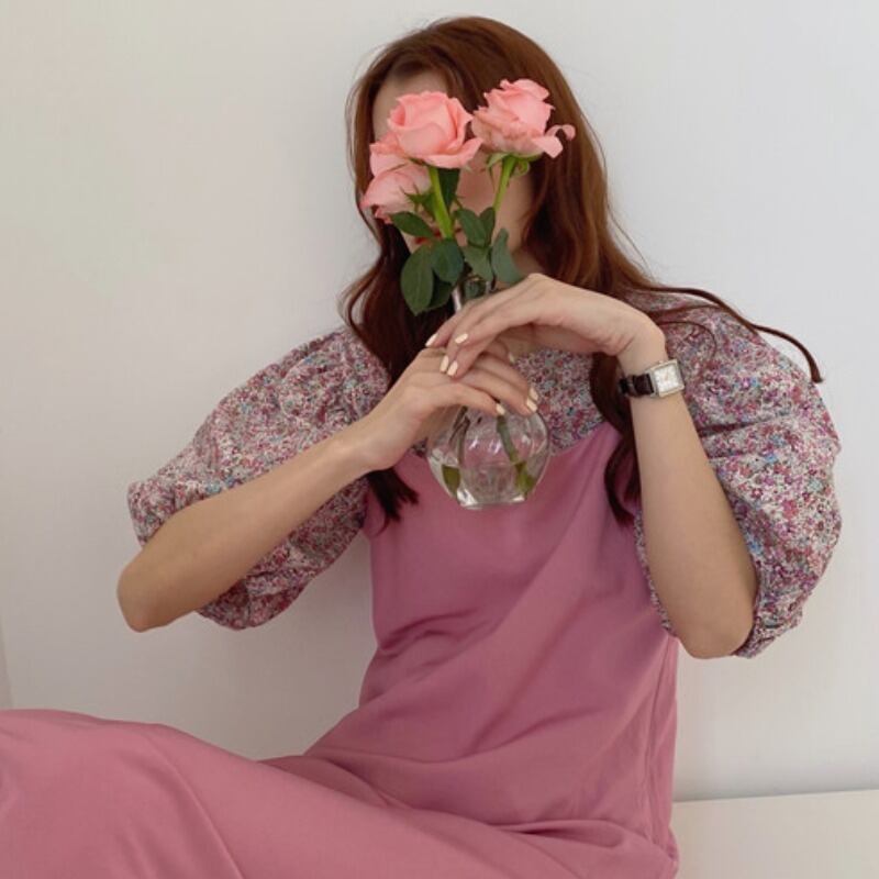 フローラルスリーブシャツ ルーズVネックロングドレス 花柄 長めのストラップ ICC_レディース9740561