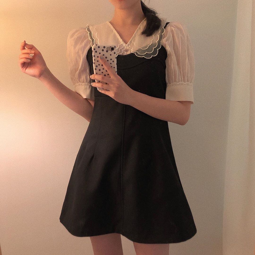 カラーボタンプリーツルーズショートスリーブシャツ レディース 大人ガーリー スウィート キュート カジュアル ICC_レディース8810258