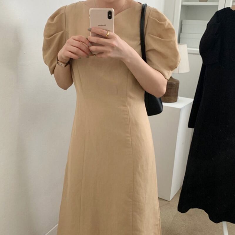サマースタンダード薄手ブラックドレス スタイルスリーブウェストスカート レトロ エレガント 夏物 ICC_レディース7316850
