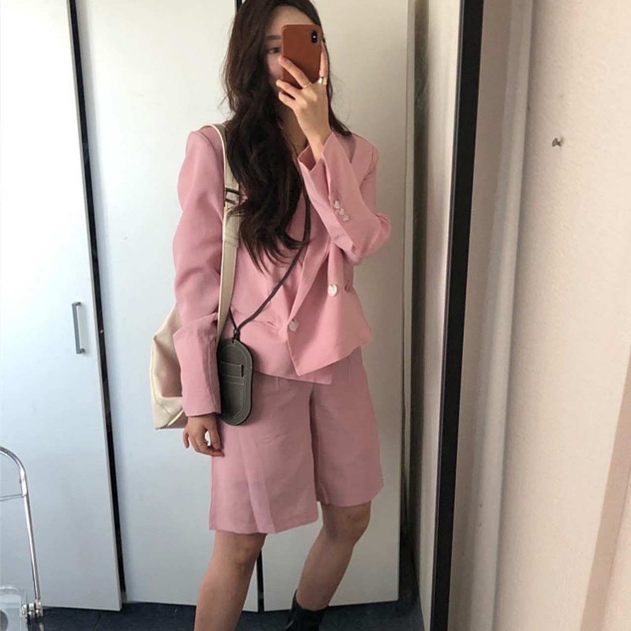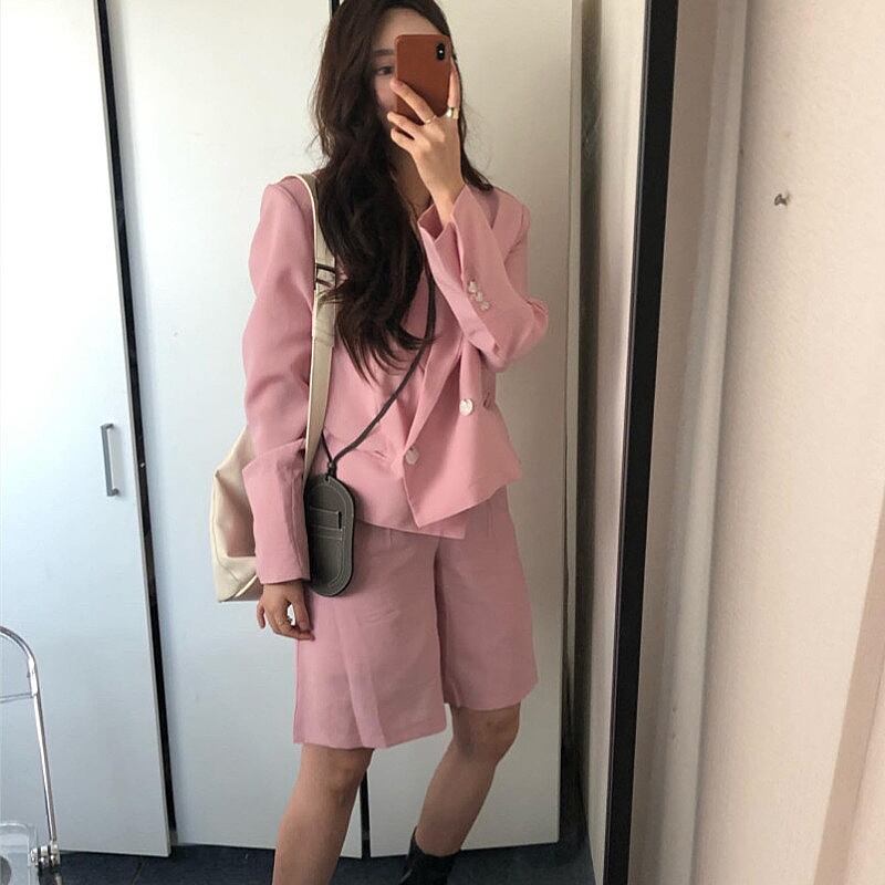 パウダールーズショートブレザー ハイウェストウェストワイドレッグカジュアルショーツ ブルマー ワイドパンツ ICC_レディース9121382