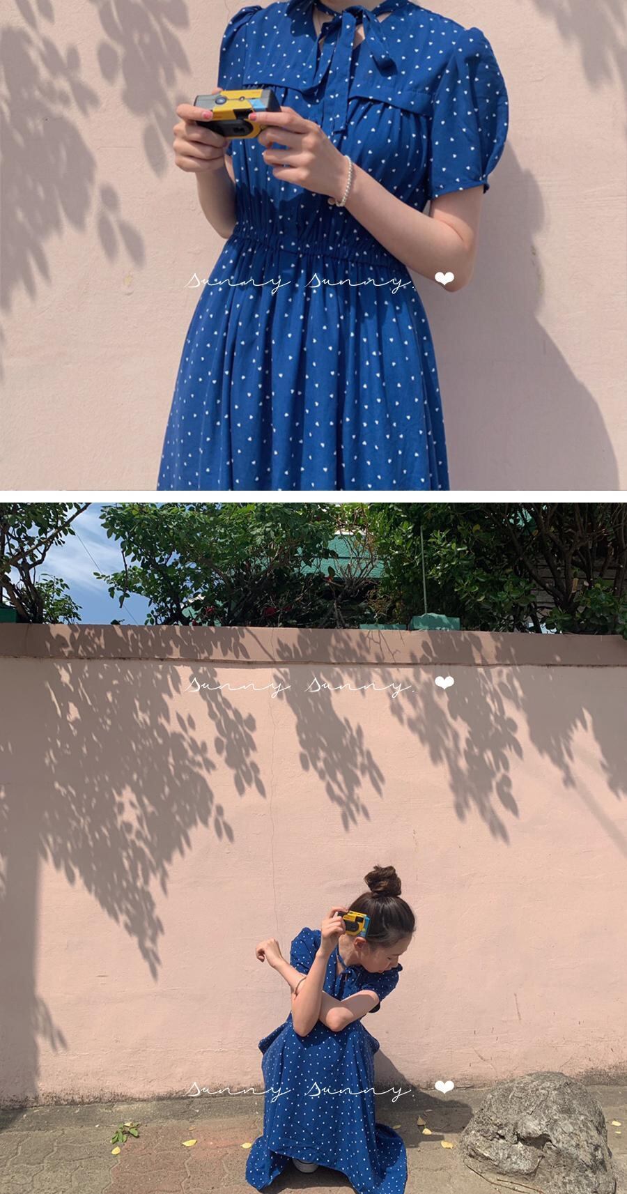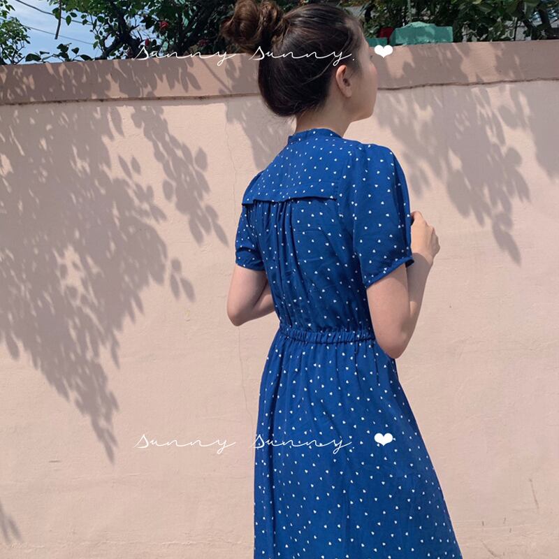 スタイルロング水玉ドレス スタンダードウェストサマーリボンスカート レトロ 夏物 左左右右6475712