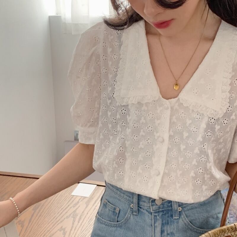 サマーカラースリーブシャツ 半袖 ショート ハーフスリーブ 大人ガーリー スウィート キュート カジュアル 夏物 ICC_レディース9284238