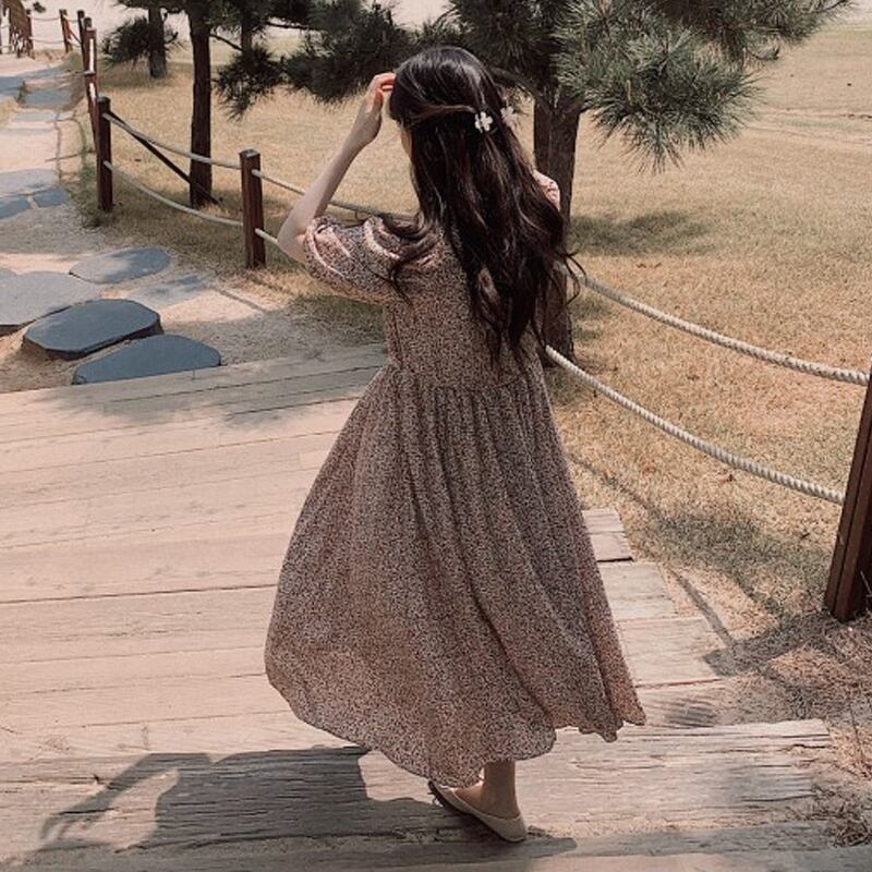 サマースタンダードスカート ロングルーズフローラルドレス レトロ 夏物 花柄 左左右右2693281