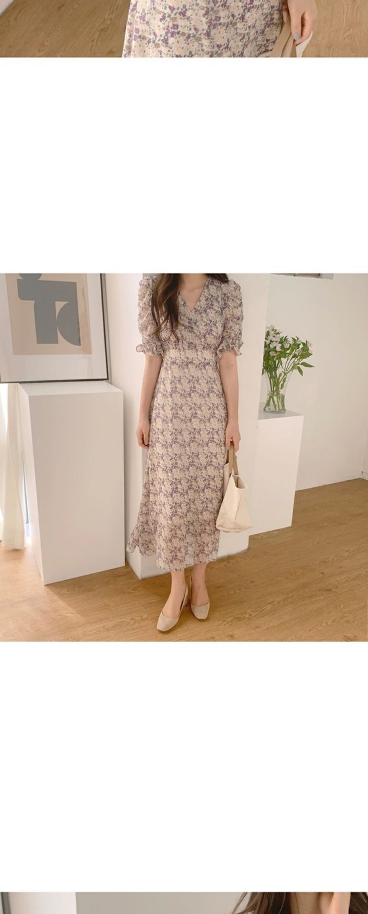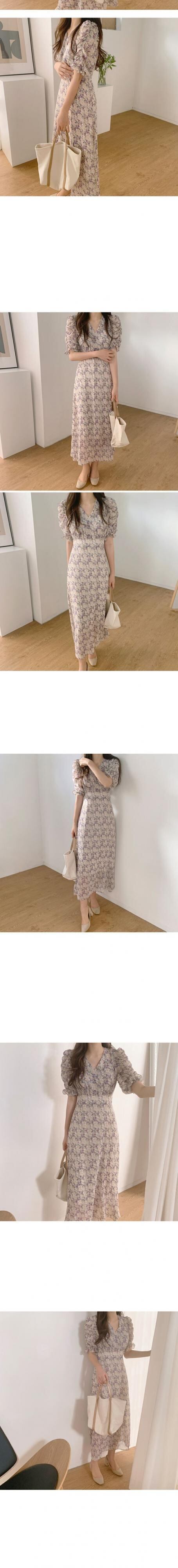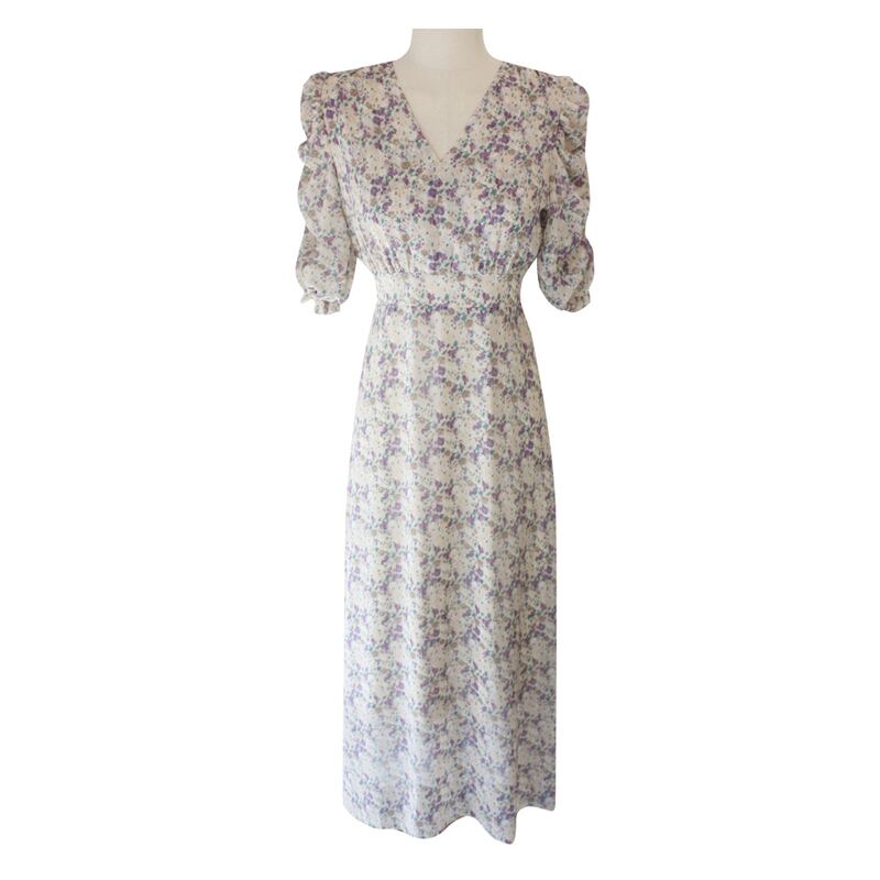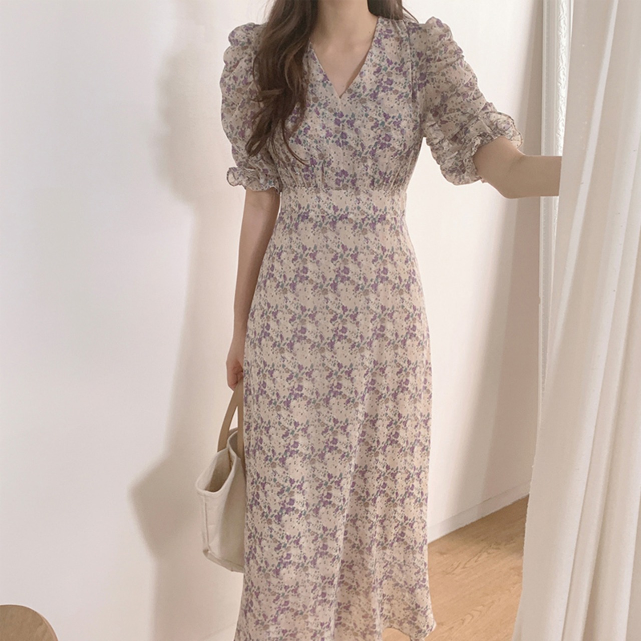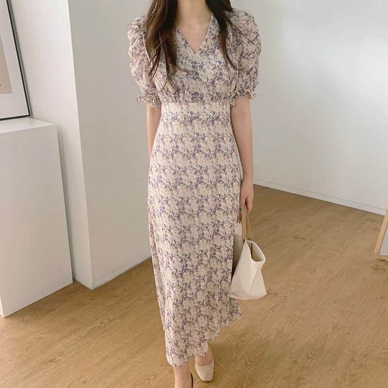 スタンダードフローラルシフォンドレス サマーロングスリム レトロ 夏物 花柄 左左右右5395812