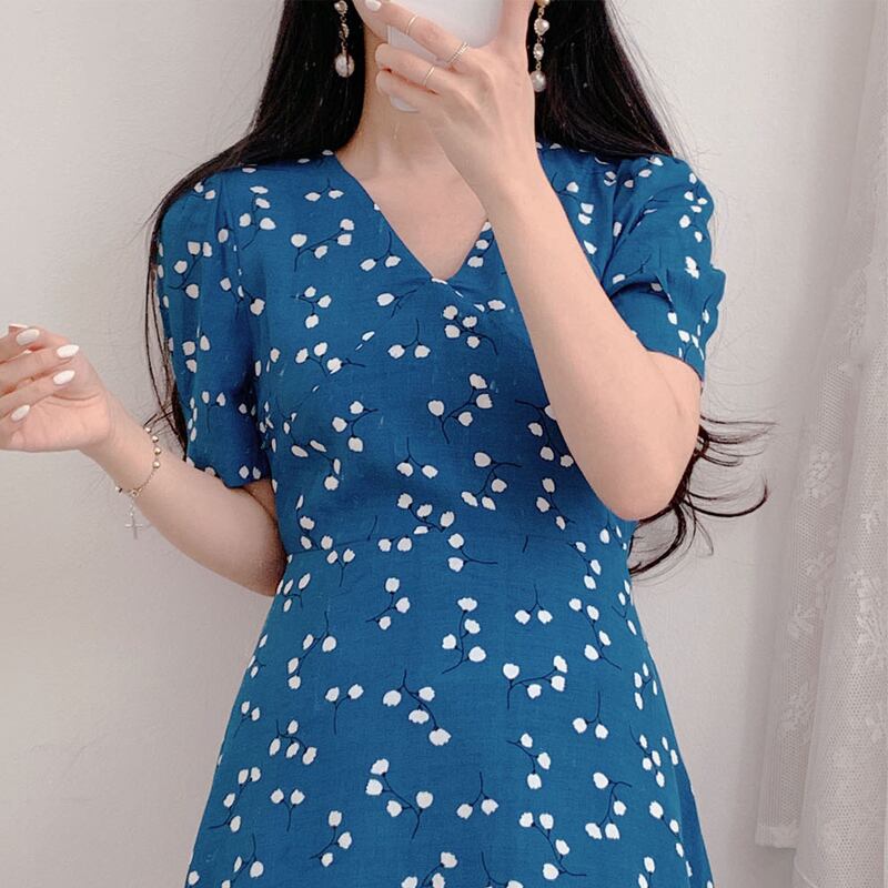 シフォンフローラルスカート ウェスト薄手水玉ドレス 花柄 フラワーデザイン 左左右右6508046