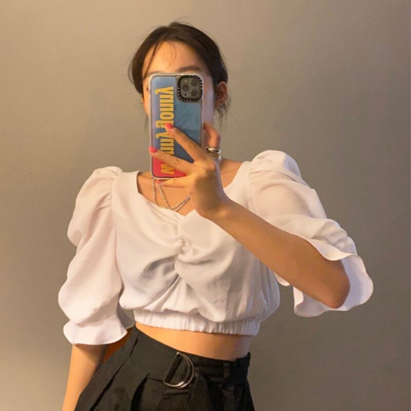スタイル薄手カラープリーツスリムスリーブショートシャツ レディース スクウェア ICC_レディース2638964