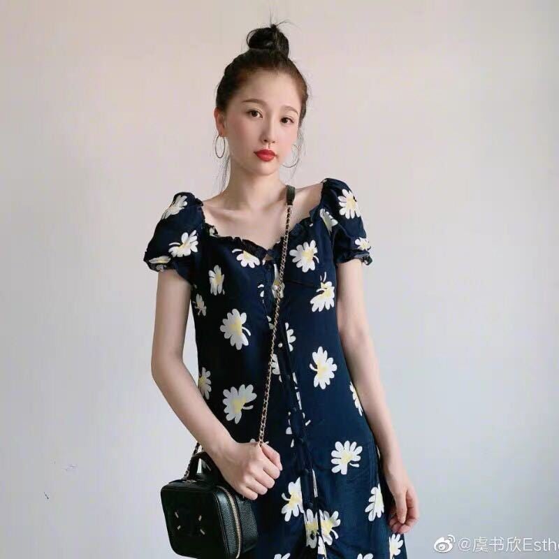 サマーフローラルシフォンドレス スタンダードスリムスカート レトロ 夏物 花柄 左左右右6721515