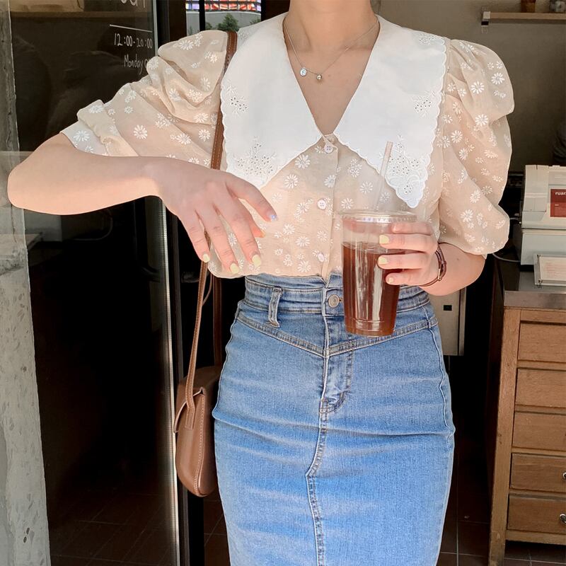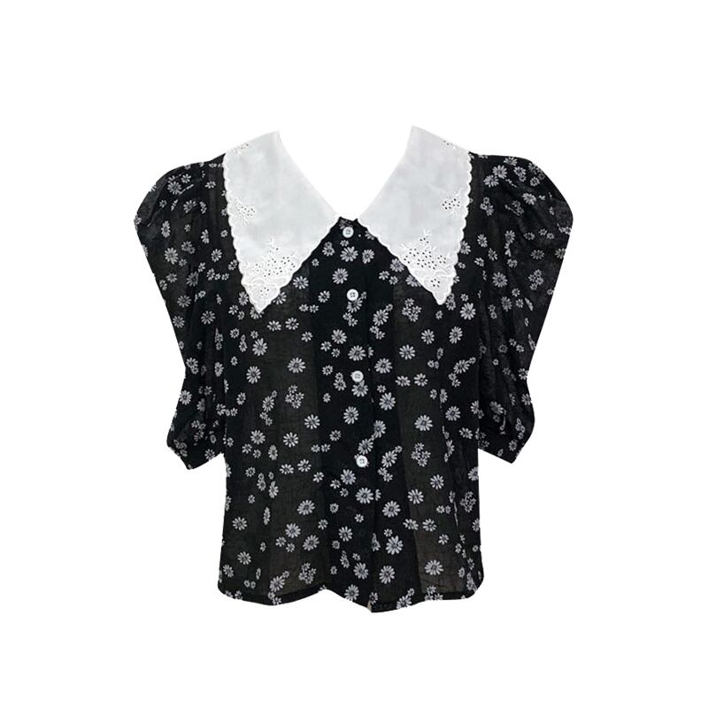 刺繍サマースタンダードプリント柄トップス フローラルシャツ レトロ 夏物 花柄 左左右右2061906