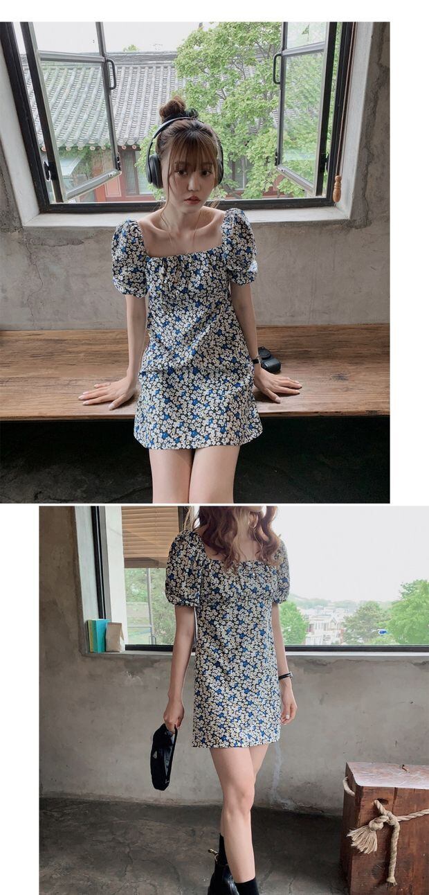 スタンダードスカート ショートスリーブフローラルドレス レトロ 大人ガーリー スウィート キュート カジュアル 花柄 フラワーデザイン 左左右右2592185