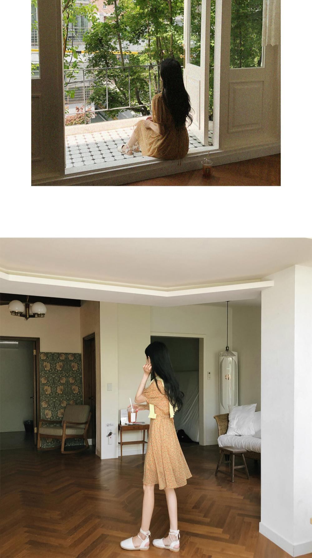 サマースタンダードスカート 薄手ウェストVネックシフォンフローラルドレス レトロ 大人ガーリー スウィート キュート カジュアル 夏物 花柄 フラワーデザイン 左左右右8632518
