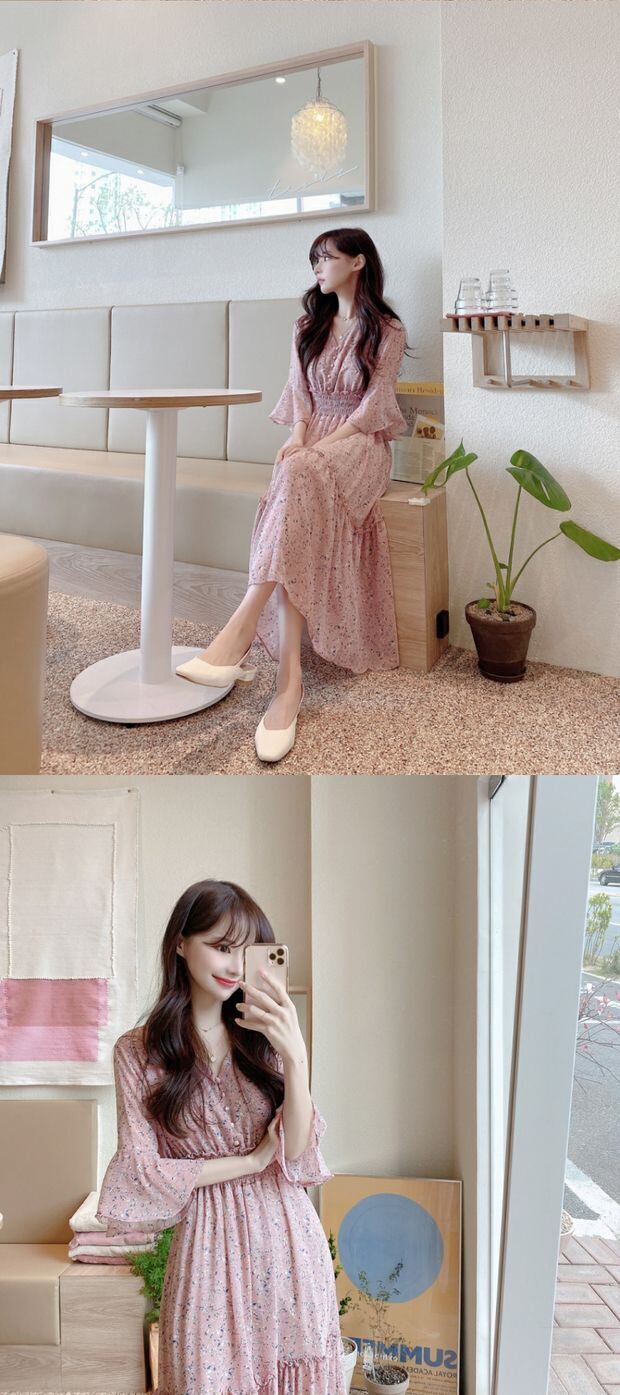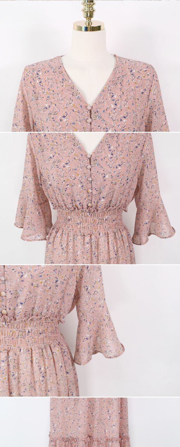 スタンダードスカート ロングウェストフローラルシフォンドレス レトロ 大人ガーリー スウィート キュート カジュアル 花柄 左左右右9823803