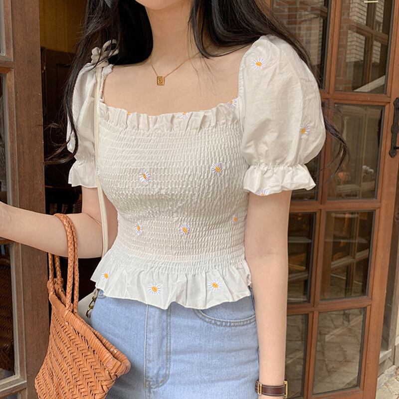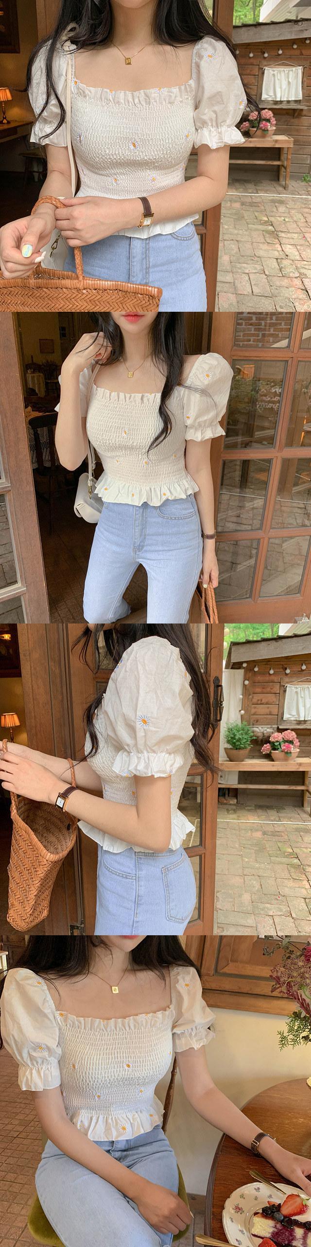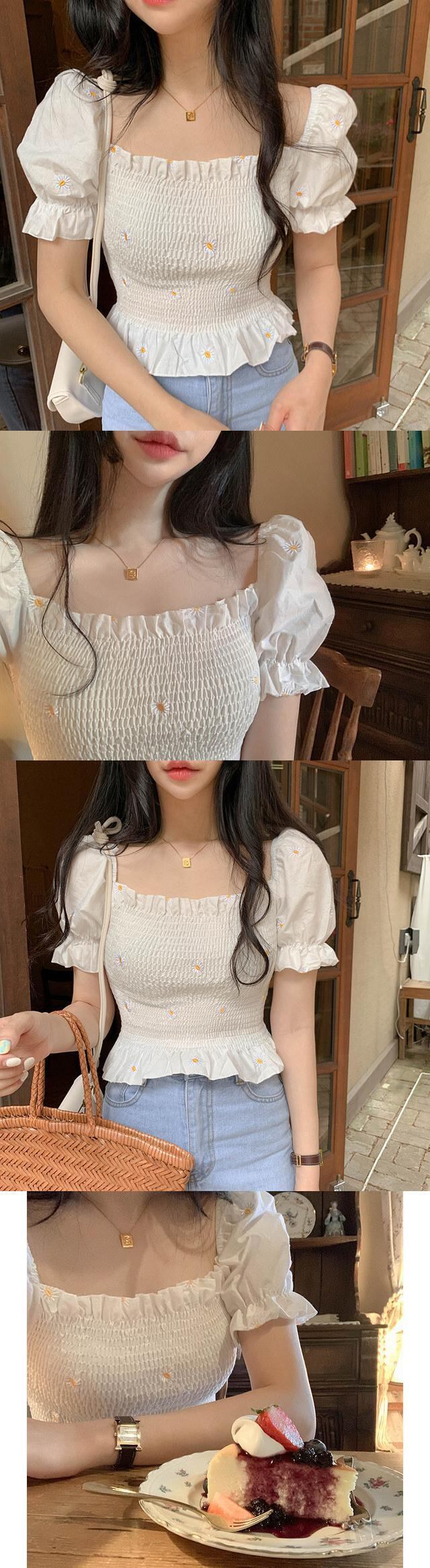 刺繍フローラルシャツ ショートスリムスリーブ 大人ガーリー スウィート キュート カジュアル 花柄 左左右右3297456