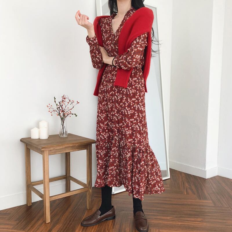スタンダードスカート ロングシフォンフローラルドレス レトロ 花柄 左左右右3247907