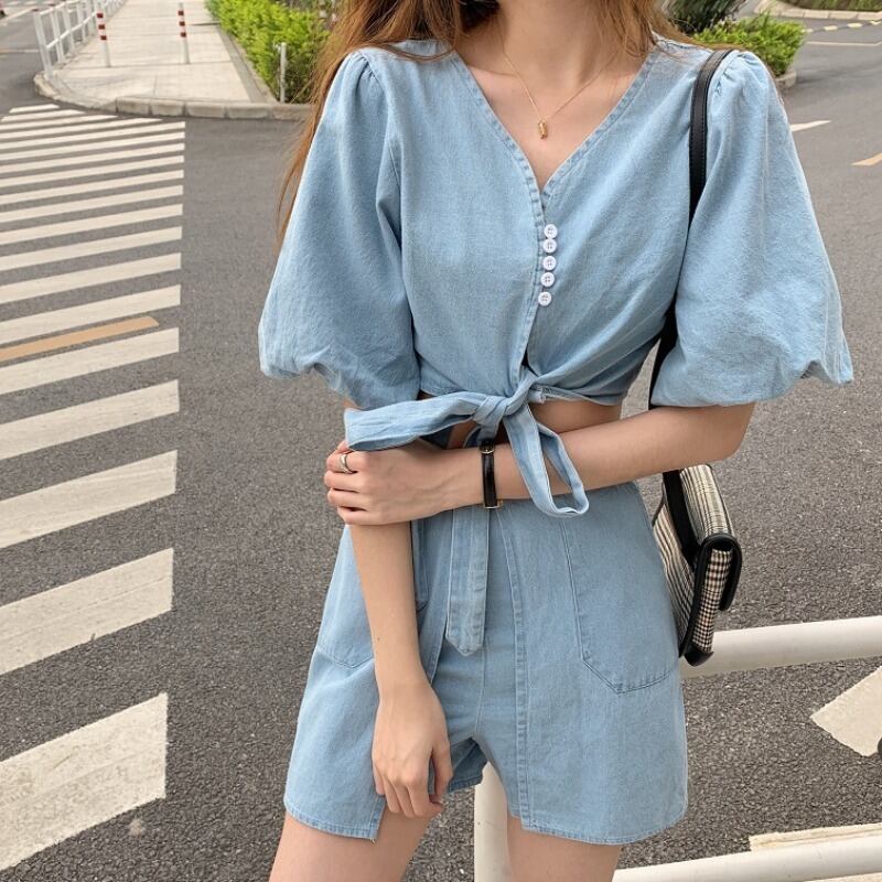色:デニムジャケットワンピース,デニムショーツシングルピース