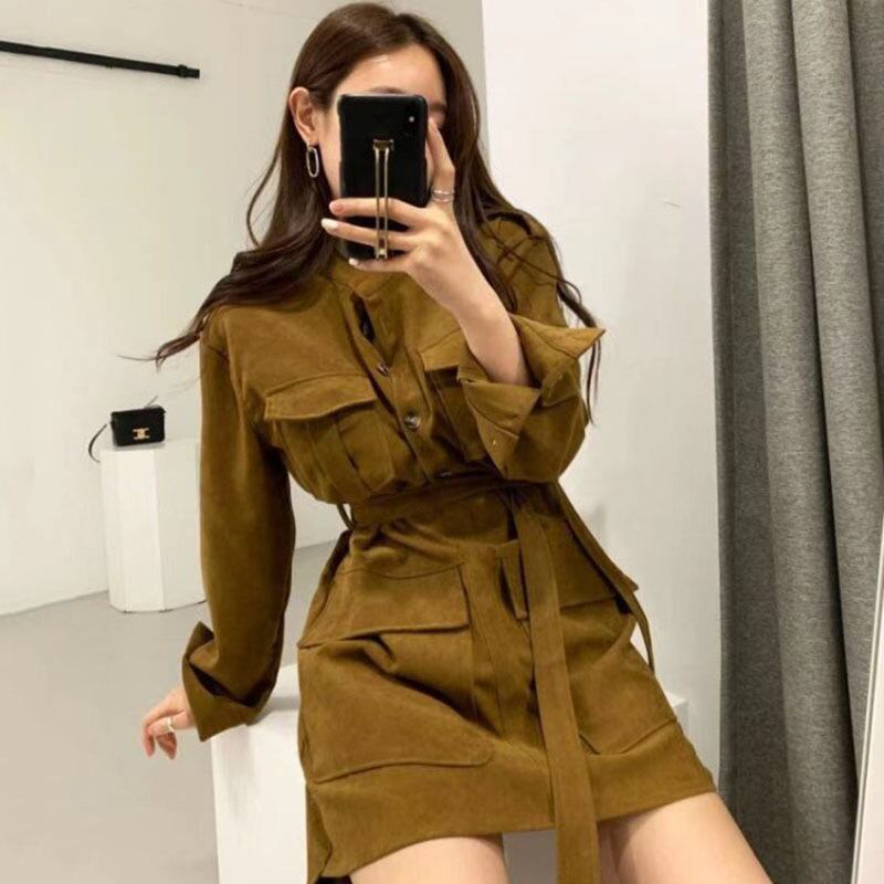 スタンダードポケットバンドウェストドレス ショートスカート レトロ ICC_レディース1608550