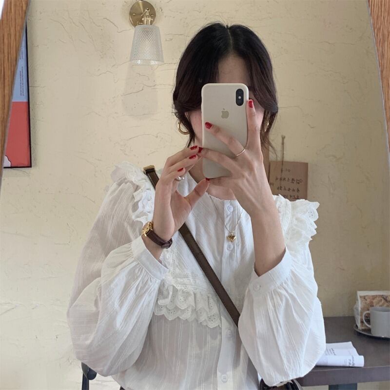 スプリングジャカードレーストップス ルーズシャツ ロング 春物 ステッチ ICC_レディース3282333