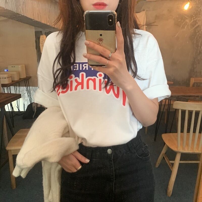 ルーズカラープリントプラムホワイトTシャツ シャツ スプリング 春物 ICC_レディース6743908