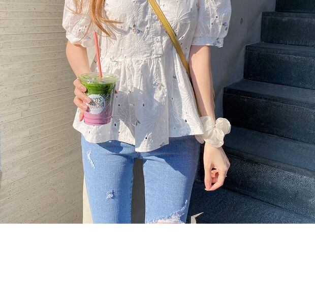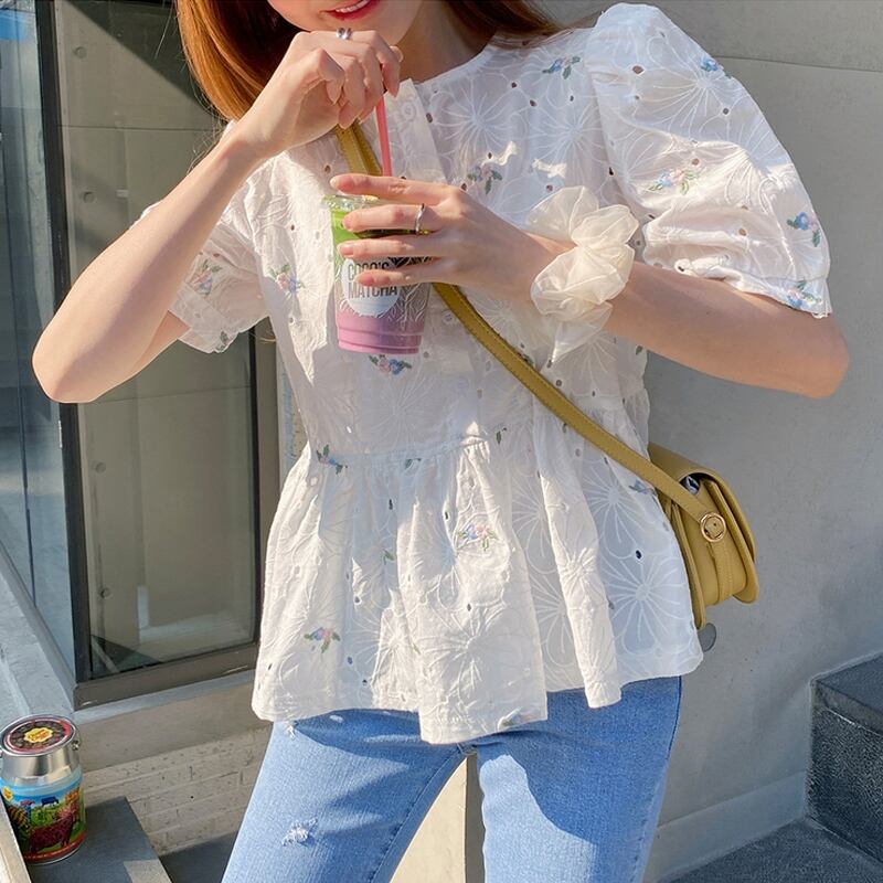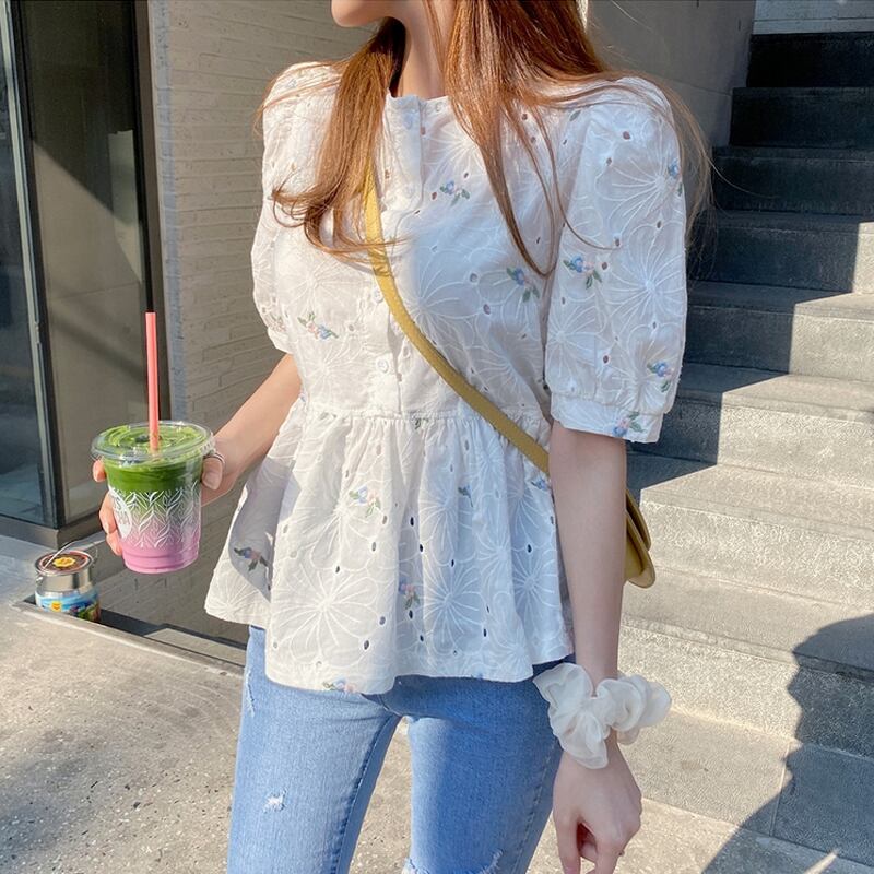 サマールーズウェストスタンダード刺繍シャツ Flowerデザイン レトロ 大人ガーリー スウィート キュート カジュアル 夏物 フラワーデザイン 左左右右6275413